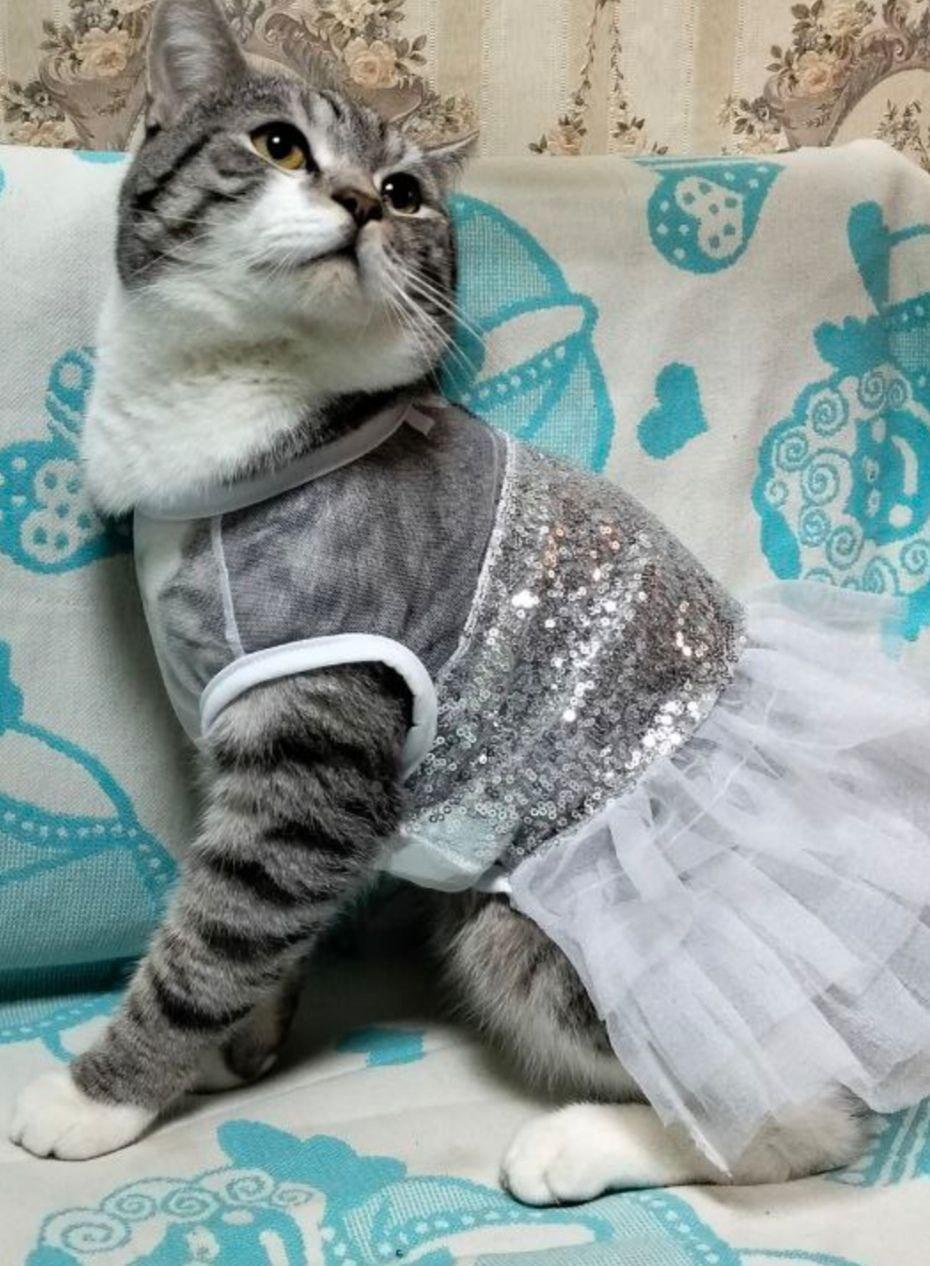 Кошка в пышном платье демонстрирует удивительное терпение