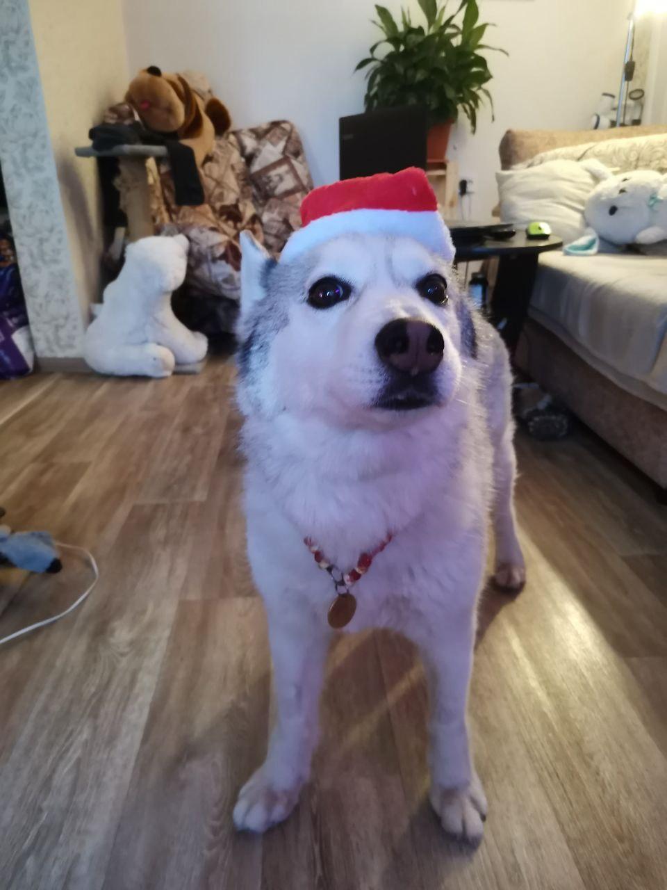 Пёс в костюме Санта-Клауса