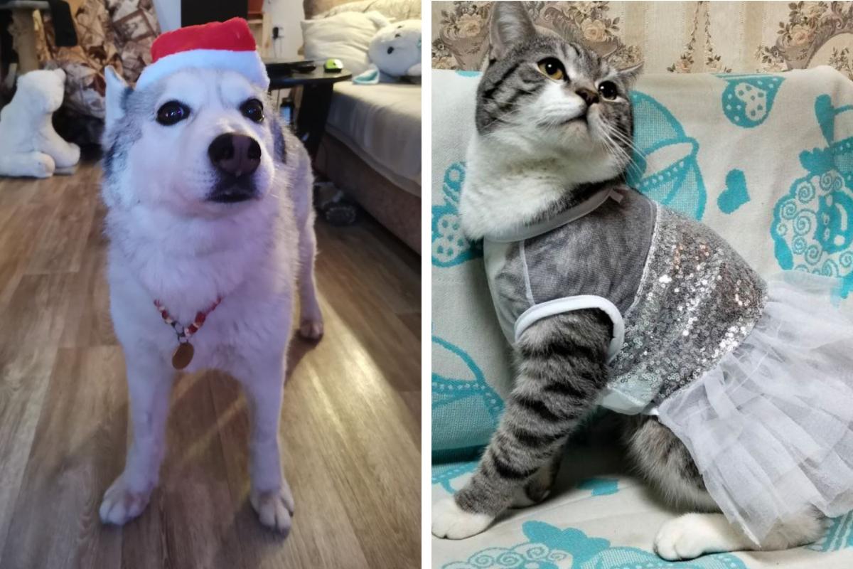 Жители Перми поделились снимками своих домашних любимцев в праздничных образах. Читатели показали, как они нарядили кошек и собак к Новому году. Среди украшений оказались не только традиционная мишура, но и полноценные костюмы, включая бальные платья.