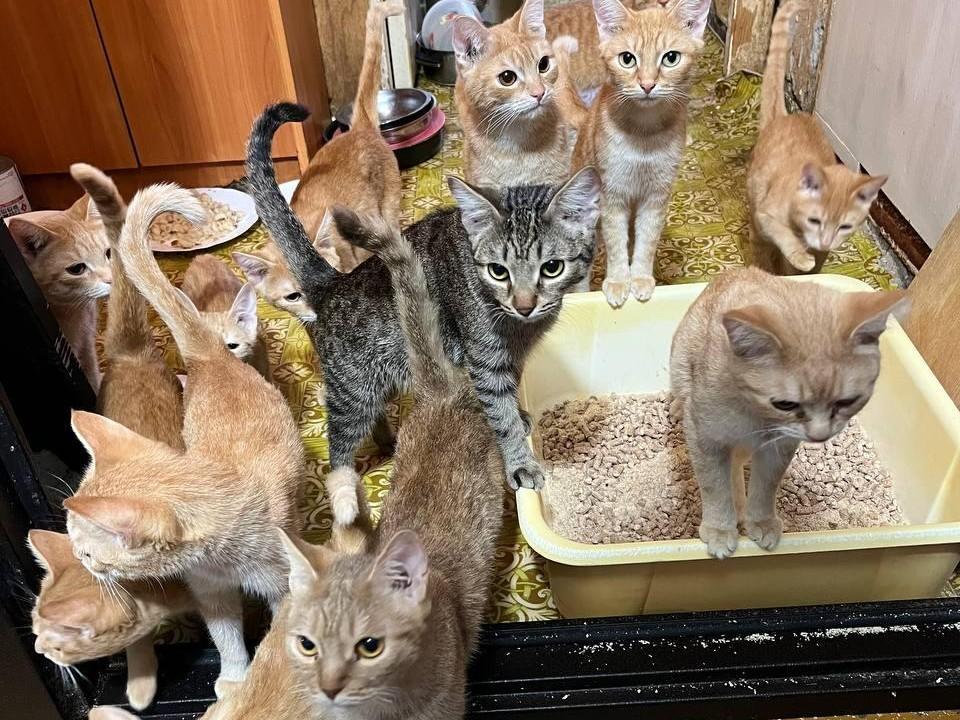 Основательница приюта «Счастливый хвост» Ия Эсаулова решила помочь женщине, проживающей в коммунальной квартире на площади всего 11 квадратных метров. В стеснённых условиях с ней ютится стая из 18 взрослых рыжих котов и трёх котят в возрасте одного месяца.
