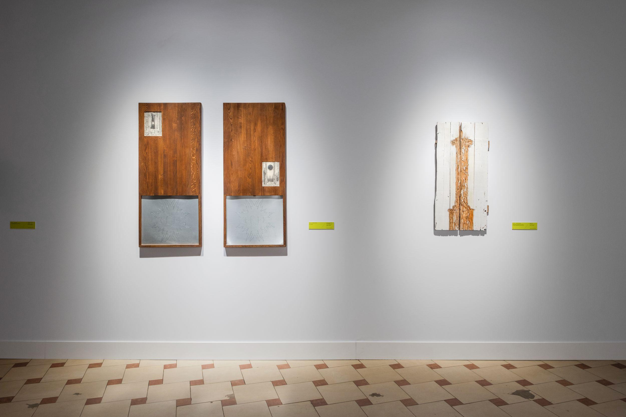 На аукционе демонстрировали диптих пермяка — картины помещены в толщу деревянной доски