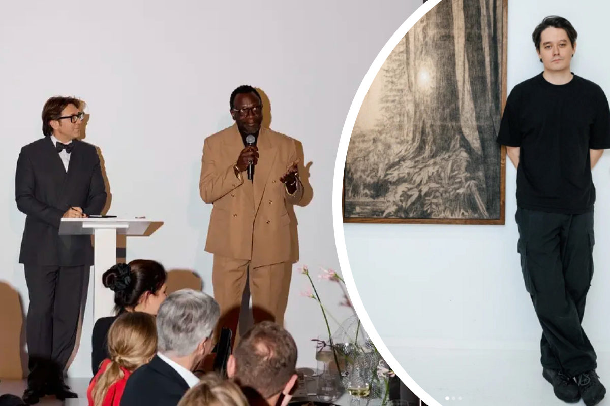 Телеведущий Андрей Малахов и куратор Азу Нвагбогу ведут благотворительный аукцион Cosmoscow, где представлена работа Славы Нестерова