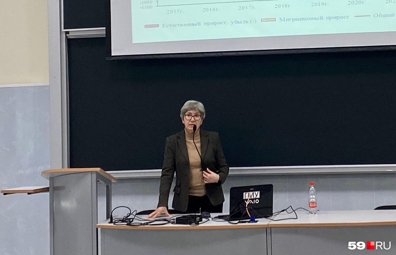 Наталья Зубаревич во время своего визита в Пермь в 2023 году