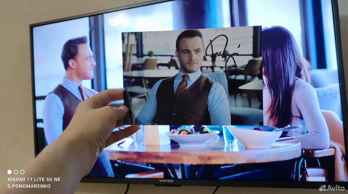 Фотографию с автографом сняли на фоне сцен из сериала «Постучись в мою дверь».