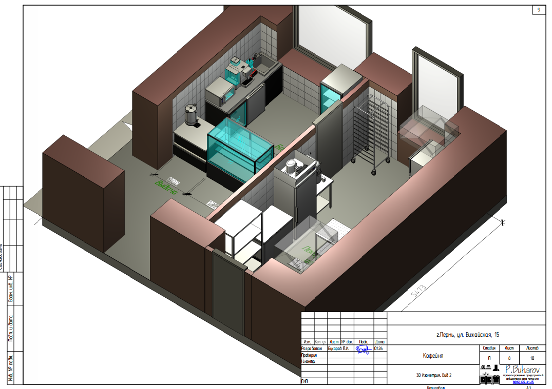 Дизайн-проект кафе уже готов. Сейчас рабочие и дизайнеры приступают к оформлению помещения, расстановке мебели и подключению оборудования. Открытие запланировано на май 2026 года.