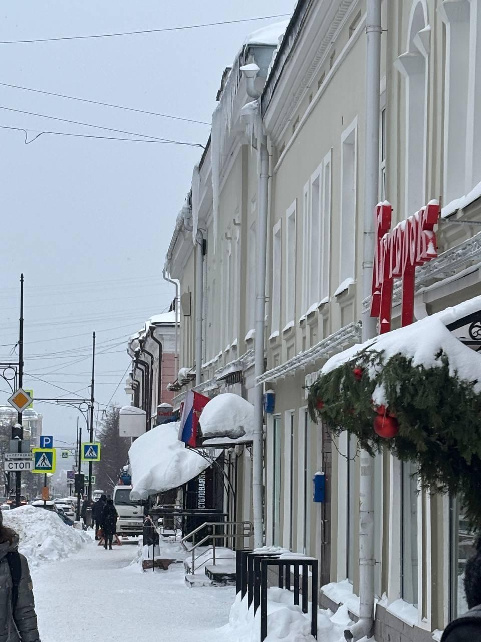 Сосульки на исторических зданиях в центре улицы Сибирской