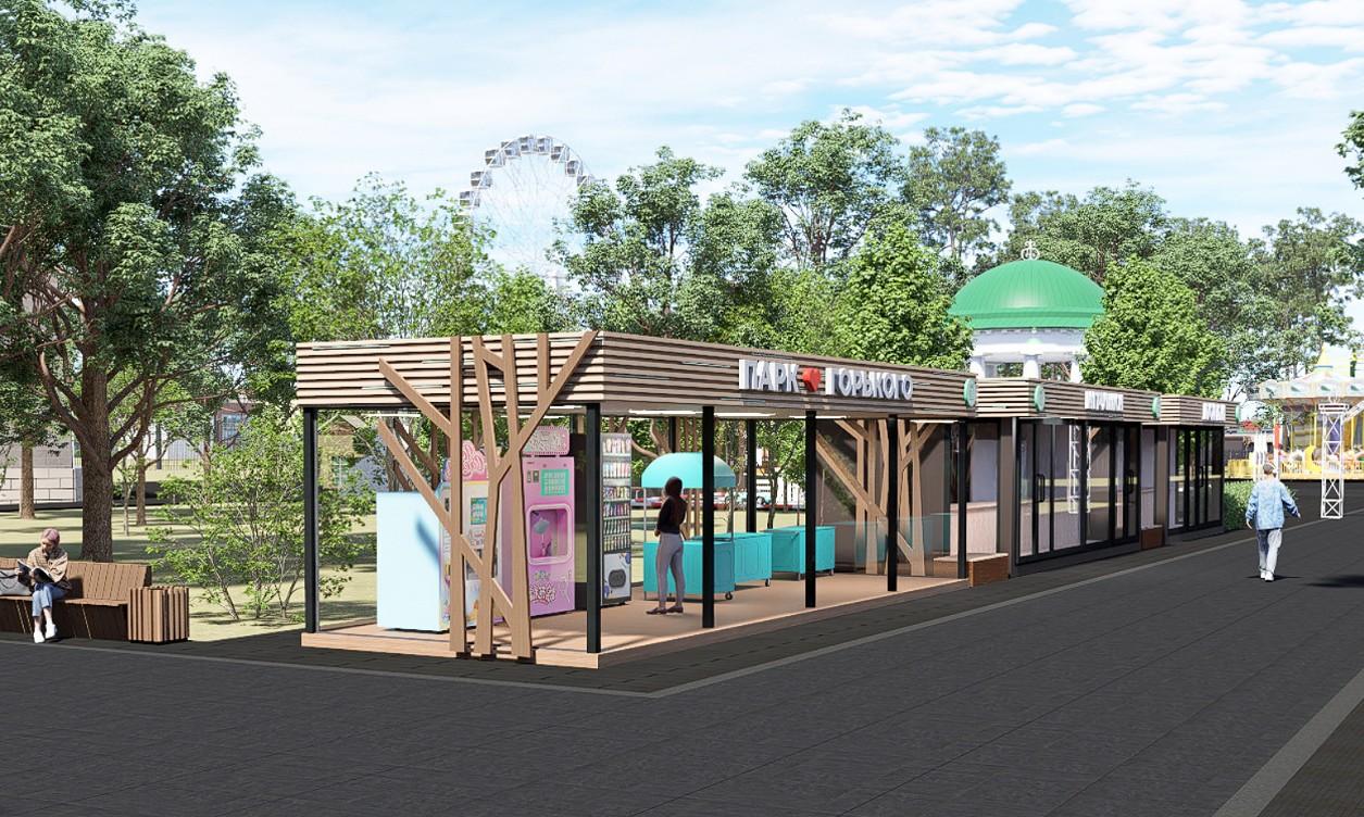 Проект закрытых киосков, которые появятся в парке Горького.