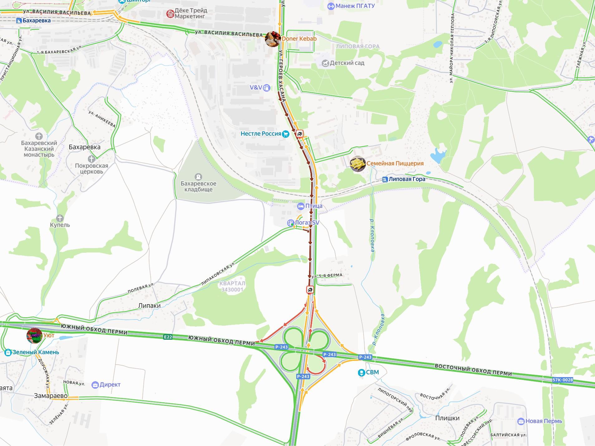 Выезд из Перми оказался заблокирован грузовым автомобилем. В направлении Фролов и Екатеринбурга формируется затор.