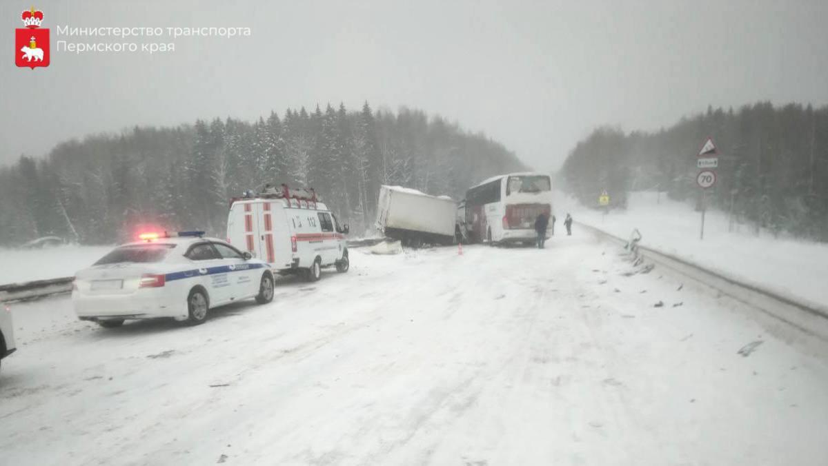 Предварительные сведения об аварии поступили также из министерства транспорта региона. Там подтвердили временное перекрытие движения на 173-м километре трассы «Пермь — Березники».