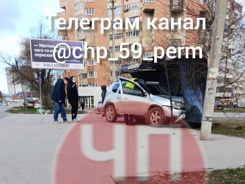 Утром 28 апреля в Перми на улице Солдатова Renault Duster врезался в остановку, пострадали водитель и три пешехода.