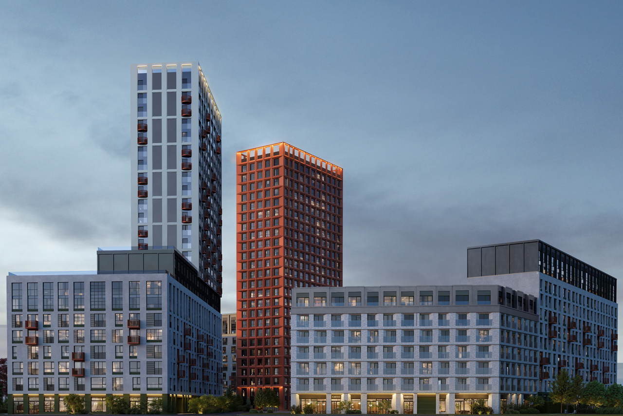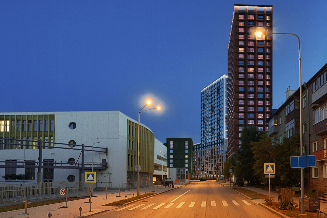 «Каждый дом в проекте — отдельное высказывание. При этом они складываются в цельную композицию, — отметила Елена Ермолина. — Важный акцент — высотная доминанта. Башня в насыщенных бордовых оттенках станет ориентиром территории. Её пластика строится на строгой сетке фасадов с живой динамикой за счет ритма окон и проемов».