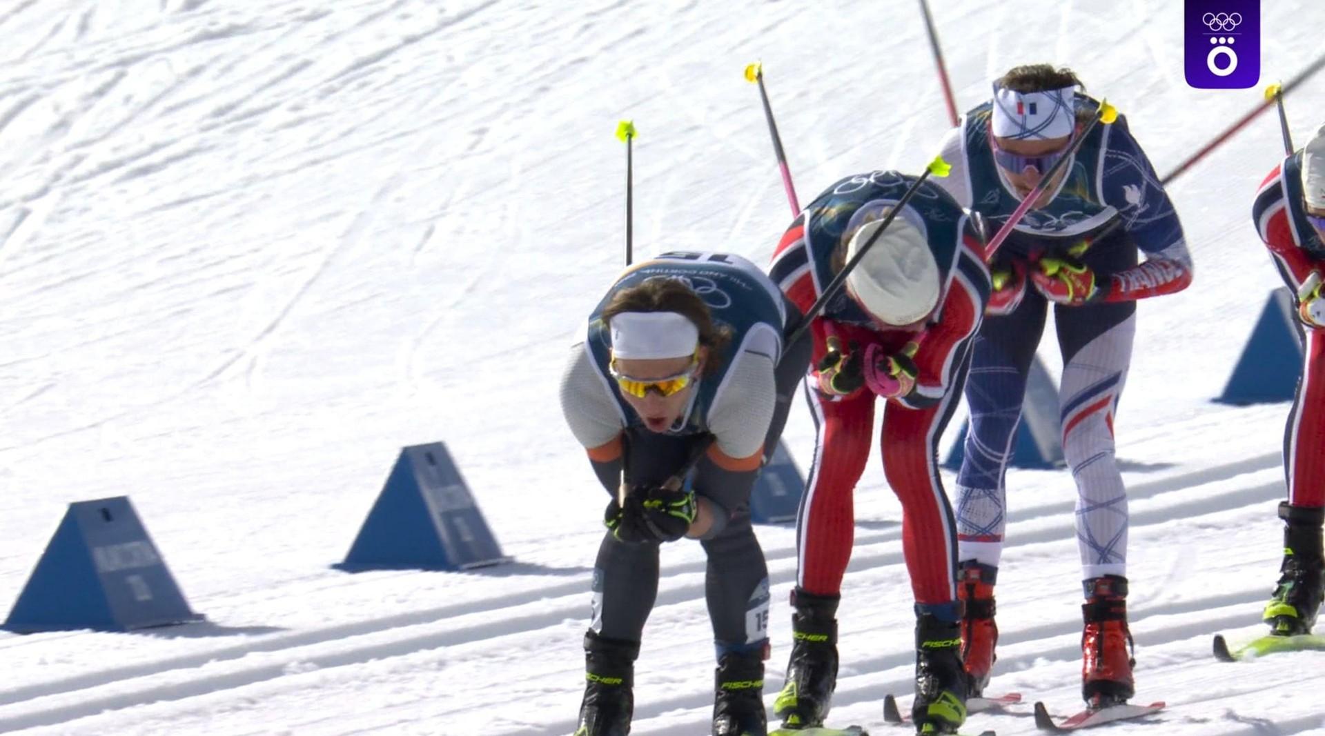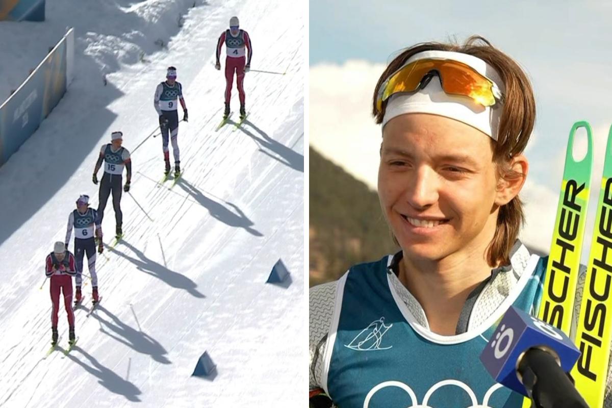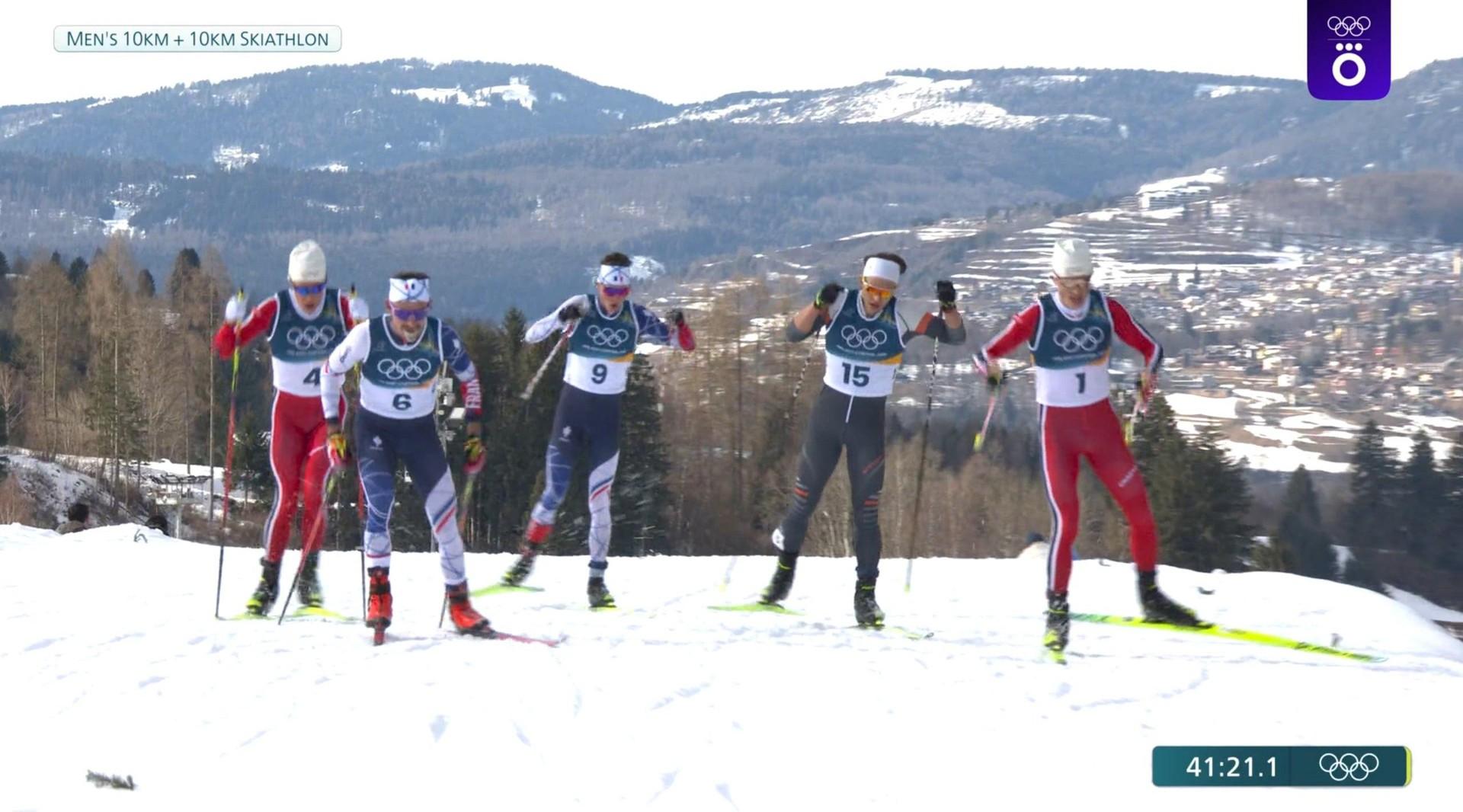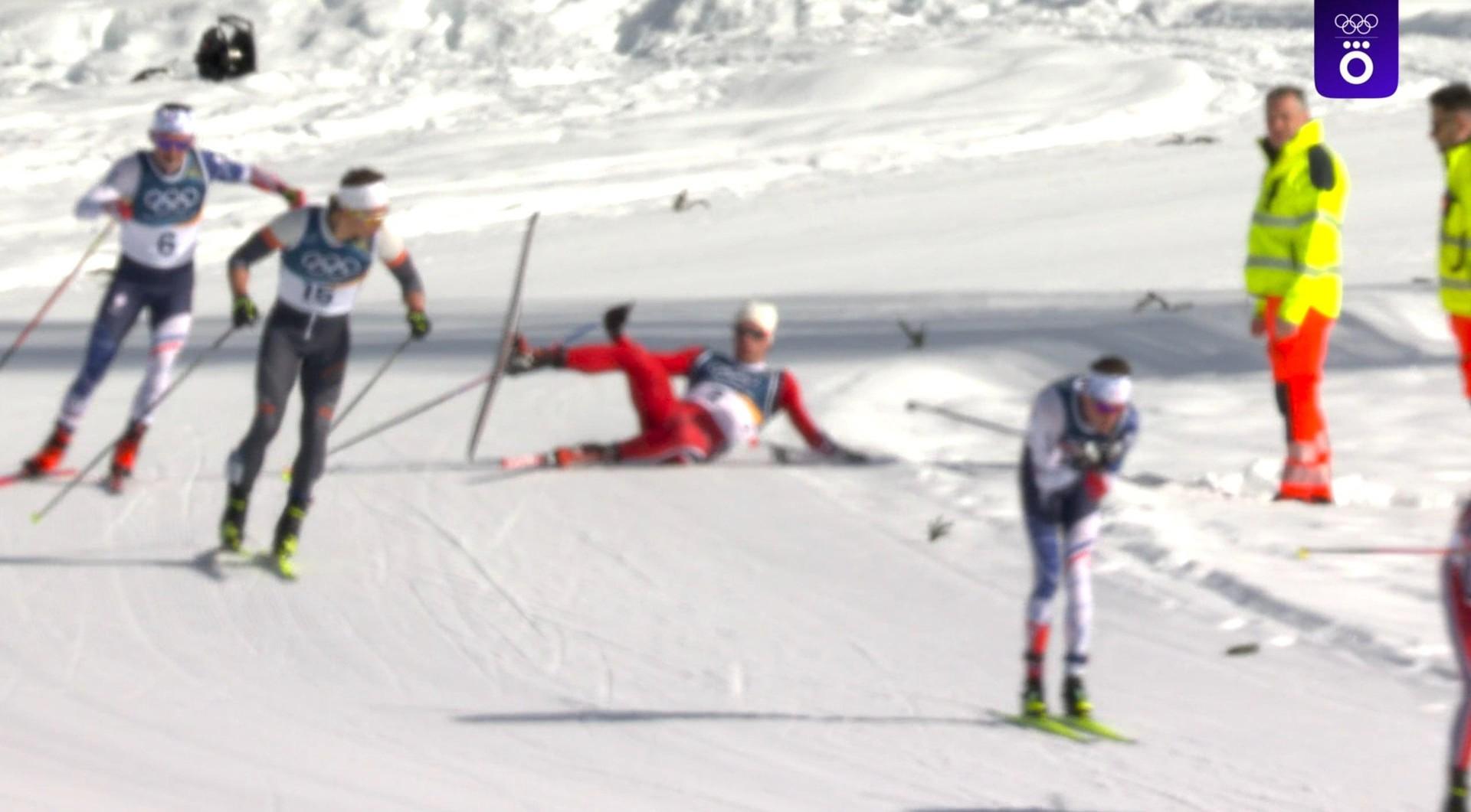 На одиннадцатом километре произошел инцидент с норвежцем Харальдом Амундсеном: тот споткнулся и врезался в российского лыжника. Коростелев чудом удержался на ногах и продолжил борьбу.