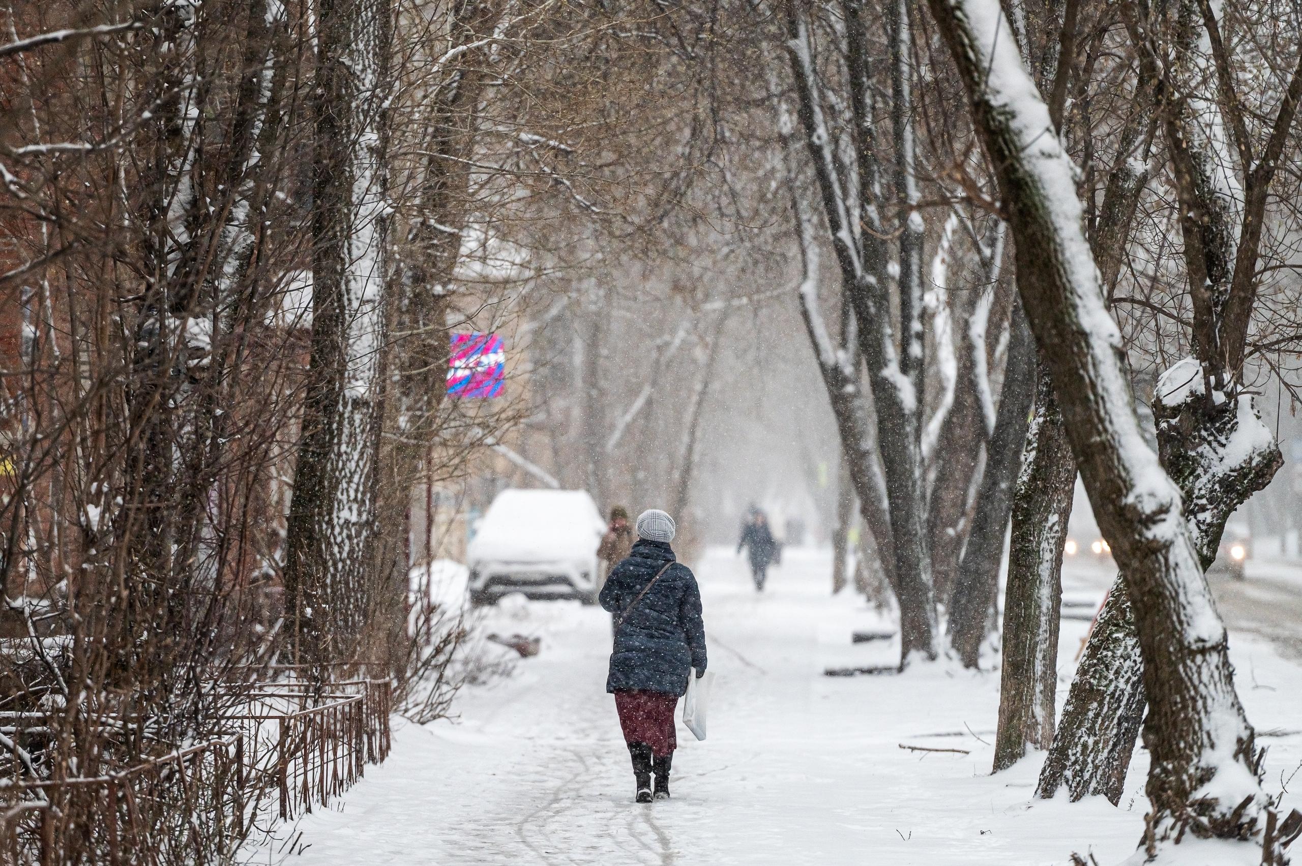 После аномально тёплых дней в Перми выпал обильный снег, покрыв город сугробами.