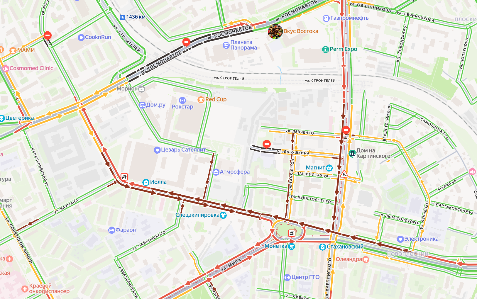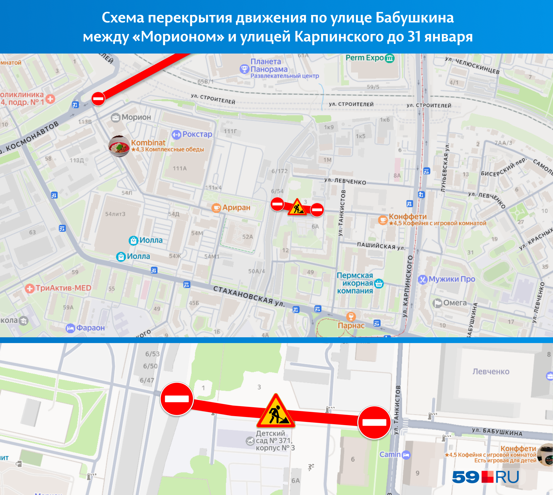 «Выезд из „Мориона“ через улицу Бабушкина на Карпинского закрыли бетонными блоками. Теперь выезжающие из Мориона добавятся в пробку на Стаханке», — сообщил читатель 59.RU.