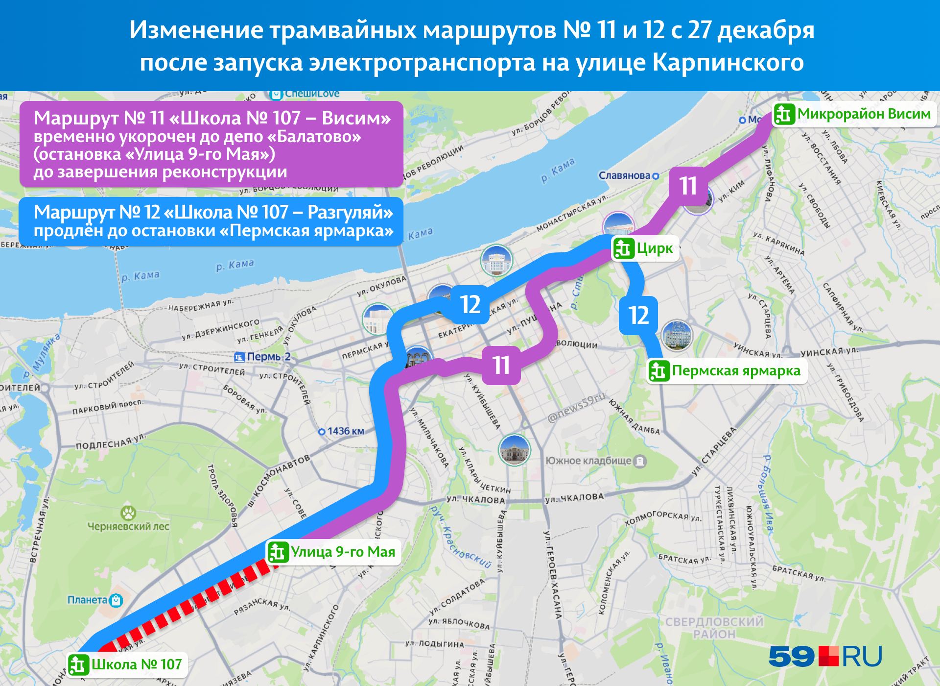 Маршрут № 11 временно следует до депо «Балатово», а № 12 продлён до бульвара Гагарина