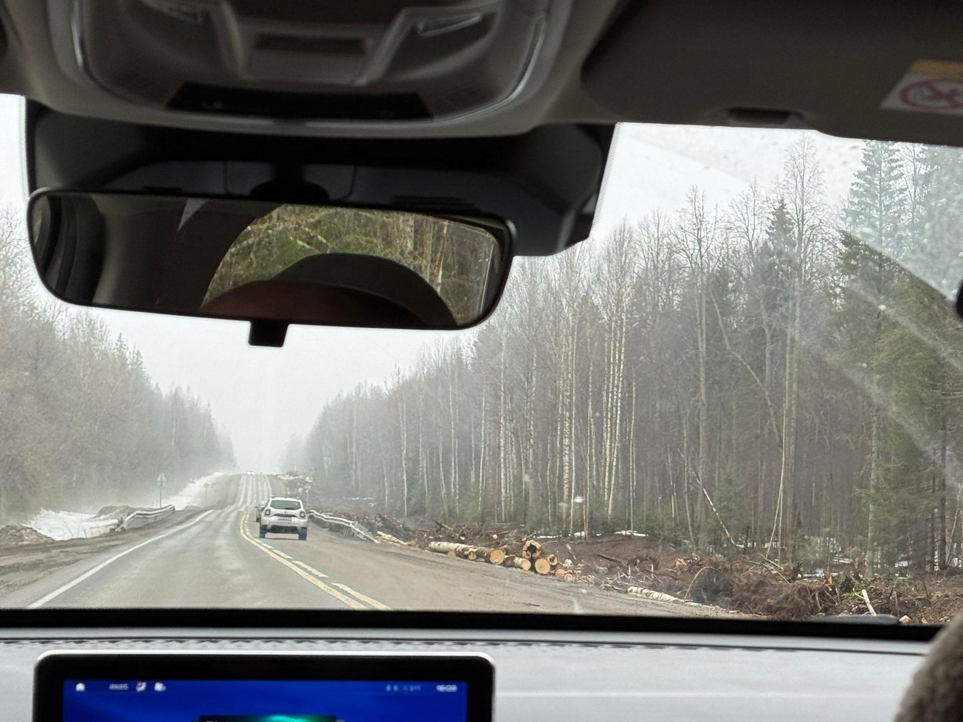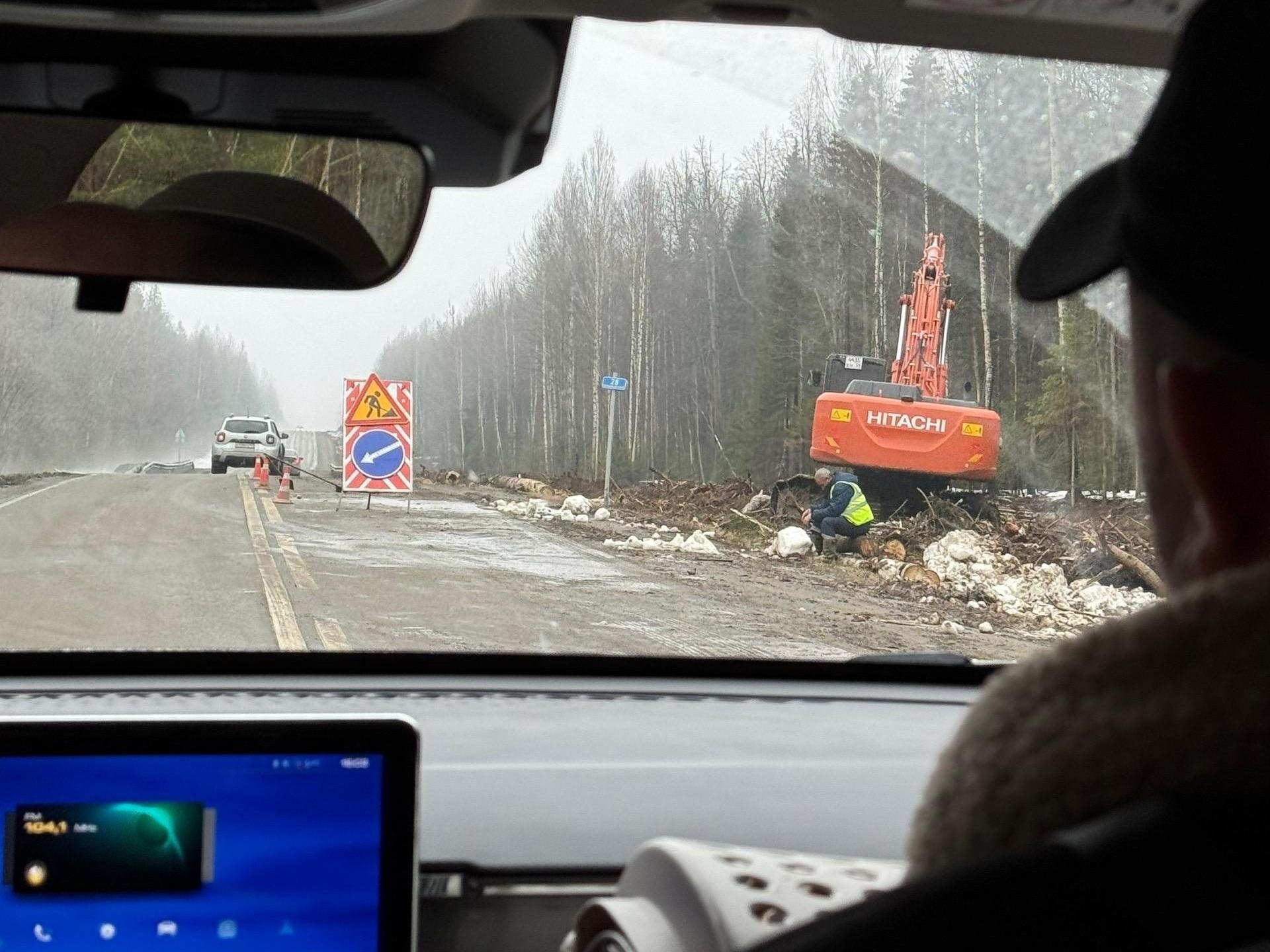 Часть деревьев вдоль дороги была удалена для расширения трассы.