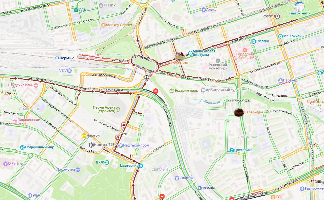 По данным онлайн-карт, выезды с Паркового отмечены бордовым цветом, что указывает на максимальную загруженность. При этом в целом по городу уровень пробок оценивался в семь баллов. Улица Строителей и кольцевая развязка на площади Гайдара полностью остановились. О происшествиях в районе сообщил Центр безопасности дорожного движения Перми.
