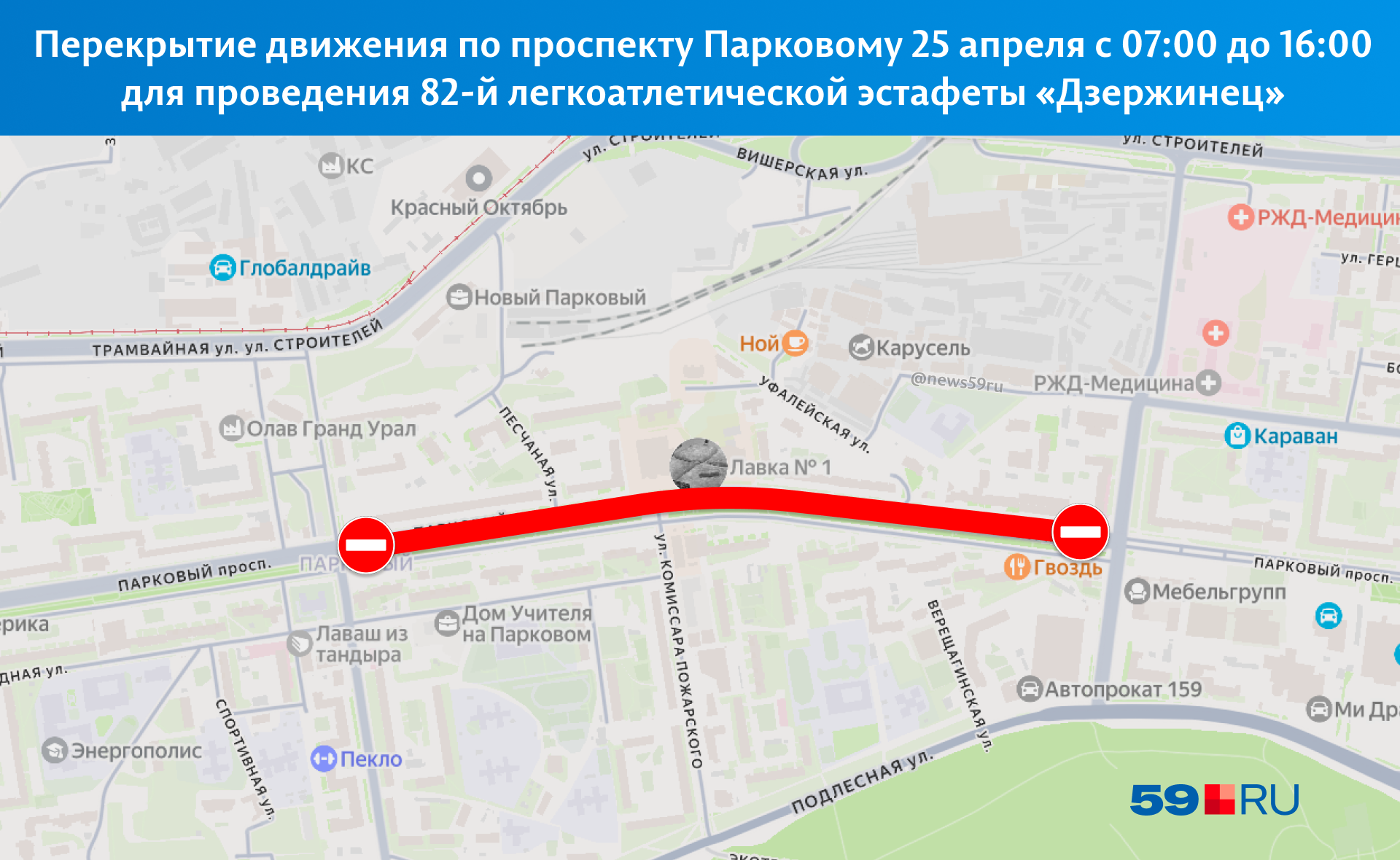 В субботу, 25 апреля, в Перми пройдёт ежегодная легкоатлетическая эстафета, из-за которой перекроют движение по проспекту Парковому.