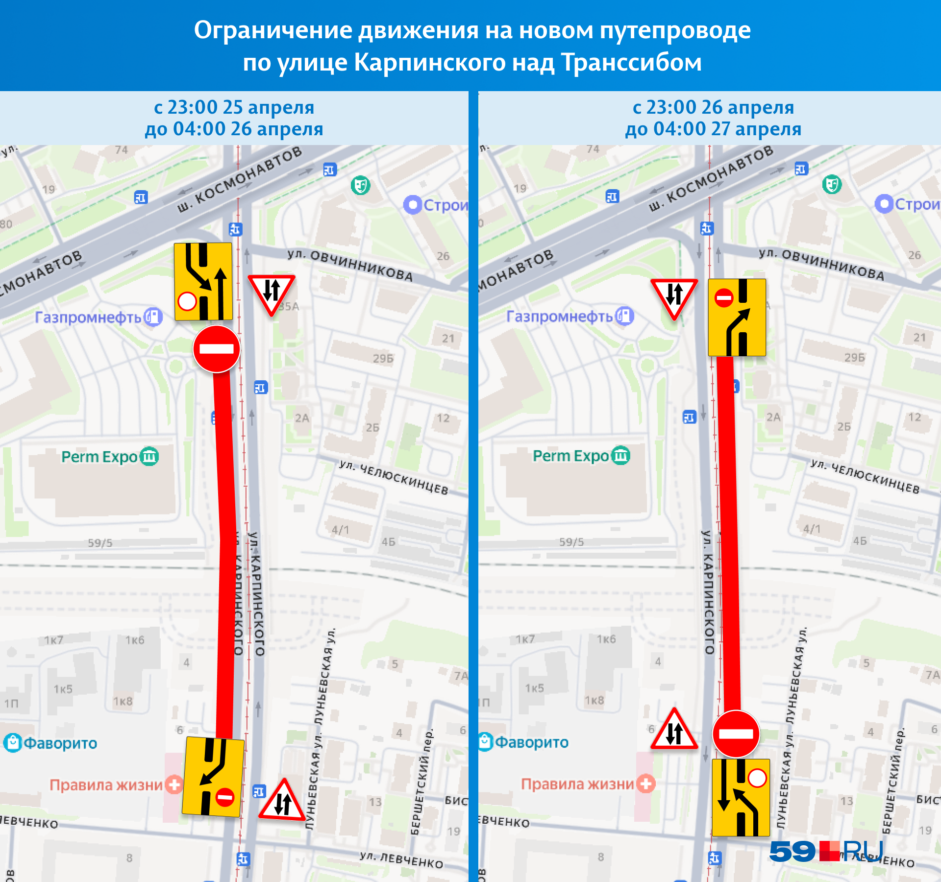 В Перми ночью закроют путепровод на Карпинского: схема объезда